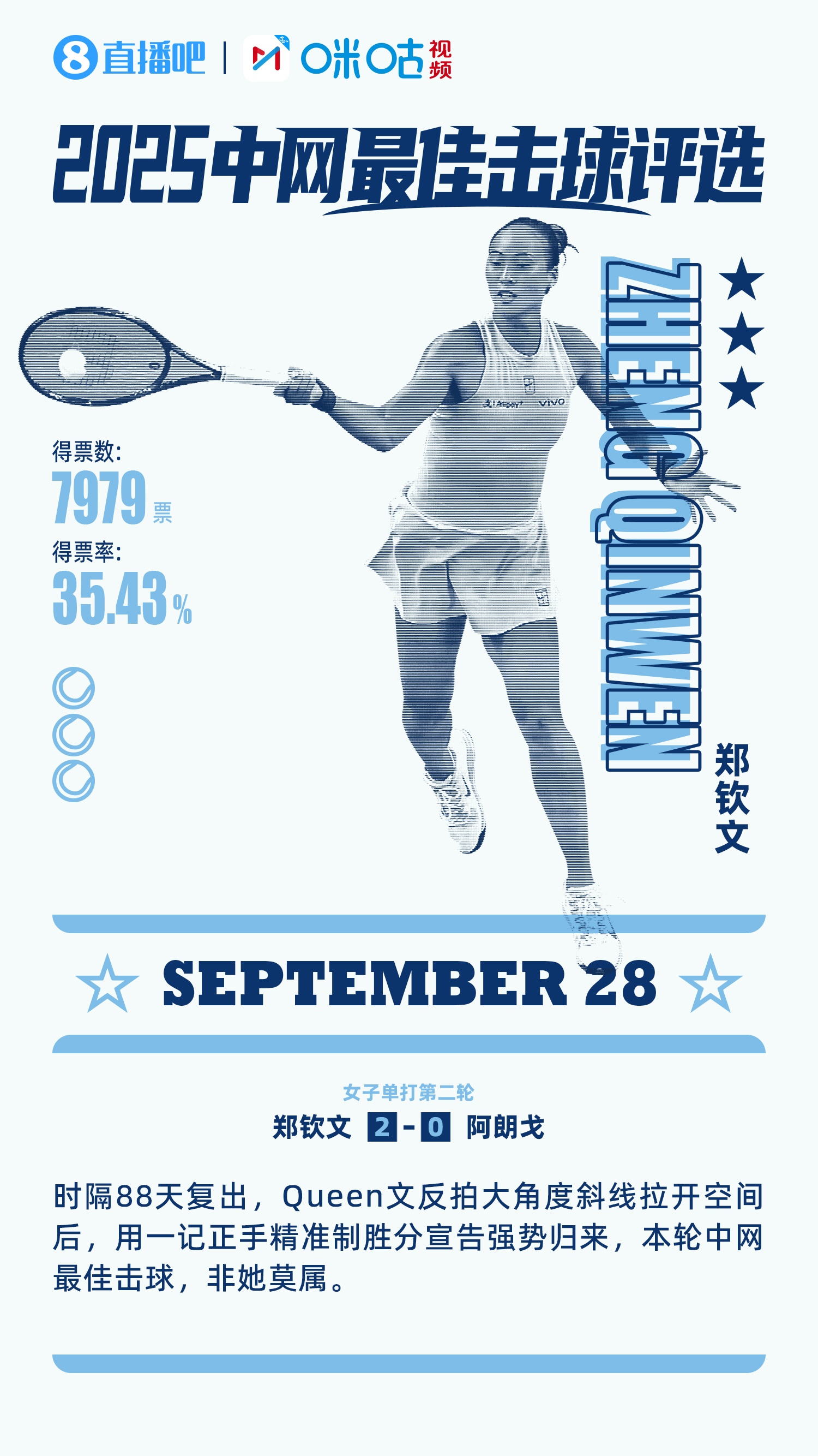 在北京的热潮中,2025年中国网球公开赛正在如火如荼地进行。比赛期间,联合咪咕体育共同推出了一项精彩活动,吸引球迷参与其中,那便是每轮的#中网最佳击球#评选。揭幕战之际,伤愈复出的郑钦文凭借着她那令人赞叹的正手击球,一举夺得了近40%投票,荣膺WTA第二轮的#中网最佳击球#称号!