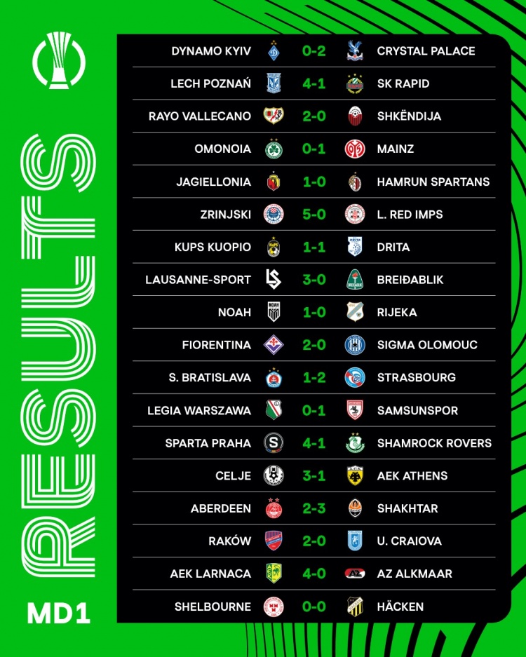 另外,洛桑在主场以3-0大胜贝雷达比历克,琴斯托霍瓦也以2-0战胜克拉约瓦大学,佛罗伦萨同样以2-0锁定了对奥洛莫茨的胜局,似乎在宣告这支意甲球队在欧战中不容小觑的实力。
